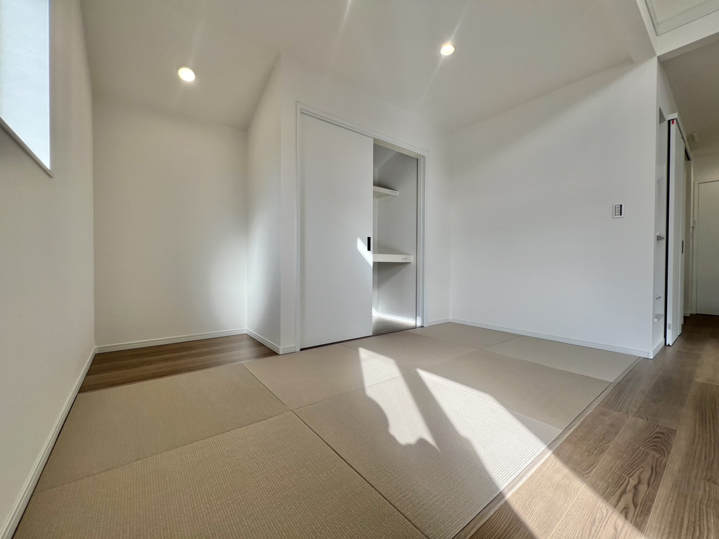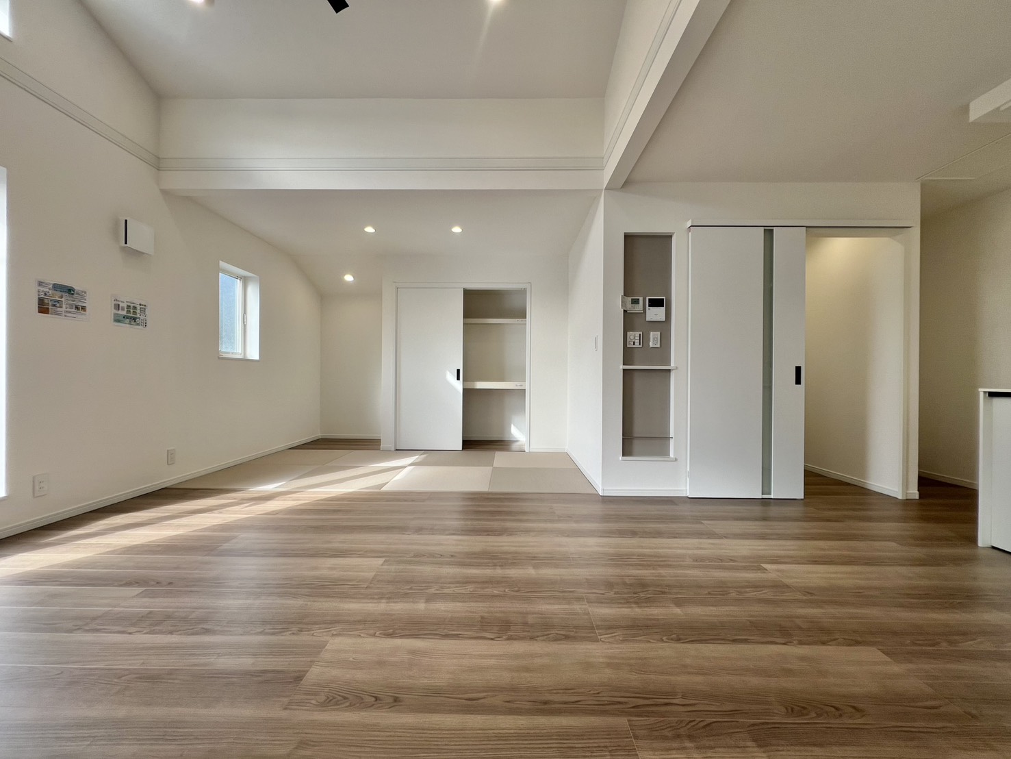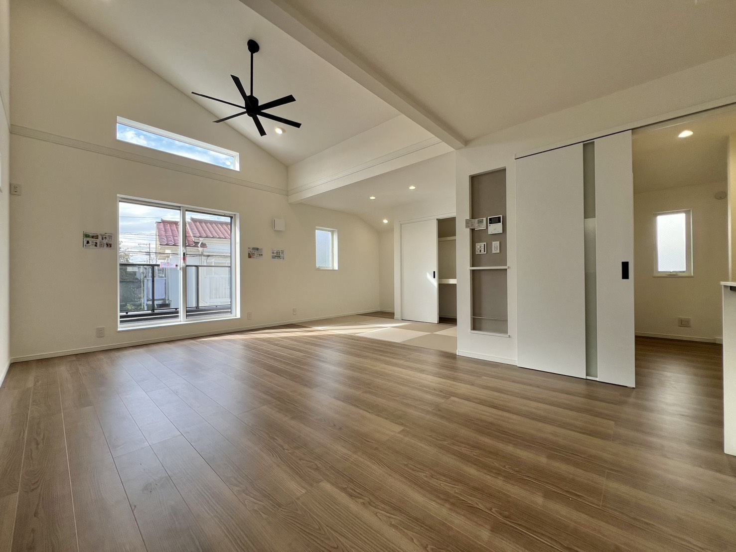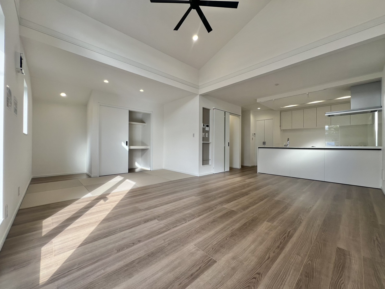 外観はシャープでおしゃれな外観、室内は居室が3部屋にLDKには4帖の畳スペースがございます!