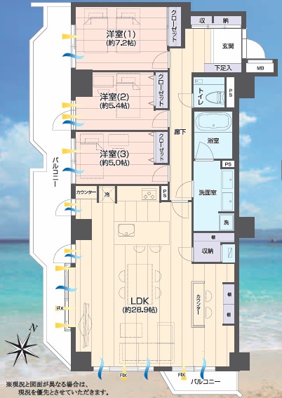 角部屋に位置し、大きなバルコニーもあり、全居室から江ノ島も望みます。